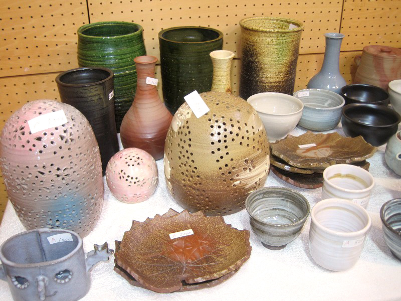 出展:陶芸(九合〈くあい〉陶芸クラブ 出展者4人)、布小物(和田文代)